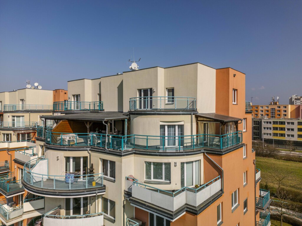 Jednotka 2+kk v Praze Letňany zůstává tak, jak ji vidíte na fotografiích – včetně nábytku, venkovního vybavení, grilu, pračky i sušičky.