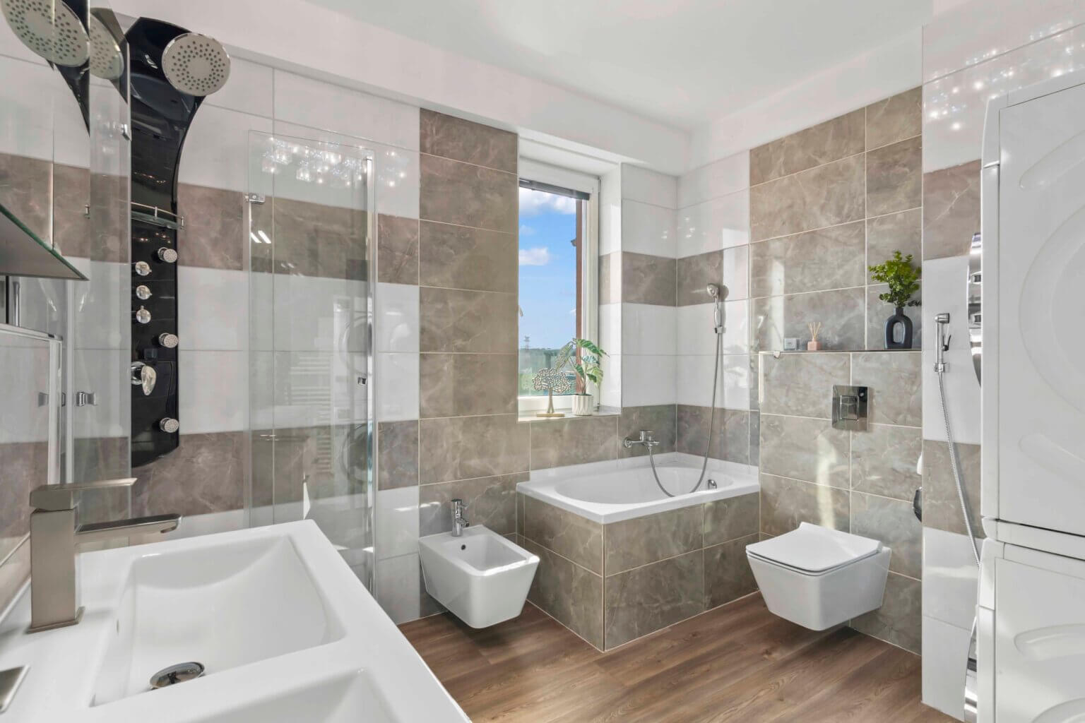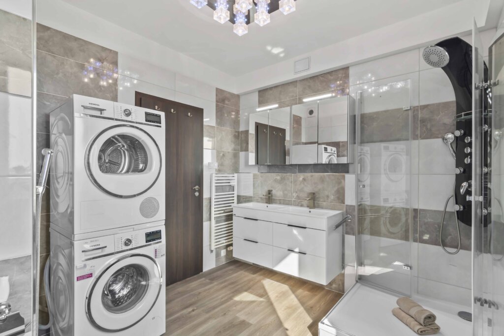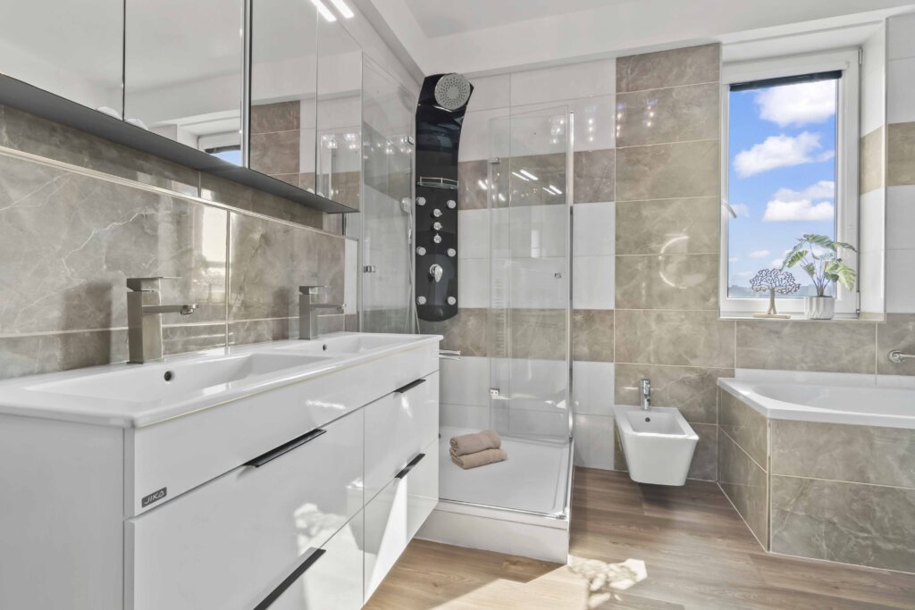 Součástí je také koupelna, kde si můžete vybrat mezi vanou a sprchovým koutem podle nálady, a praktická komora na věci, které nechcete mít na očích.